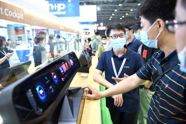 ↑5月25日,客商在2021广州国际汽车技术展览会上参观了解超高分辨率车载显示屏。