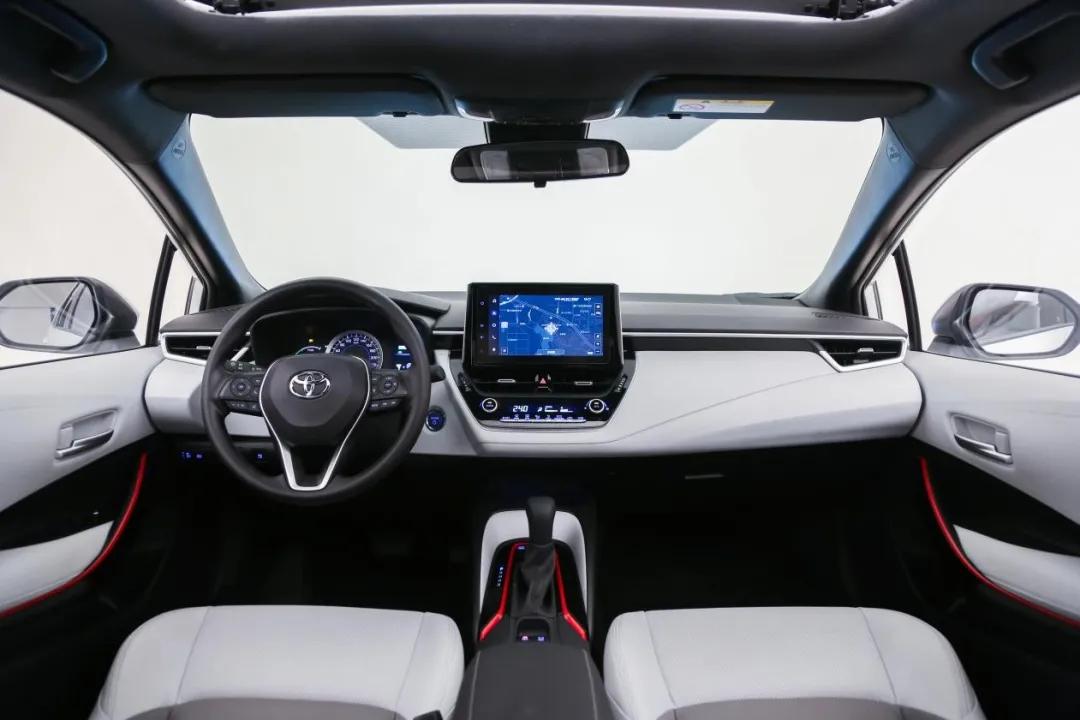 走进车内,2021款雷凌运动版基于Sensuous Minimalism内饰设计理念,营造出了更宽广的前排空间和视野。黑色与星空灰两种配色内饰,多处采用更具高级感的红色饰条及特殊缝线,明暗色调交相辉映,将车厢内的运动属性提升至最佳。