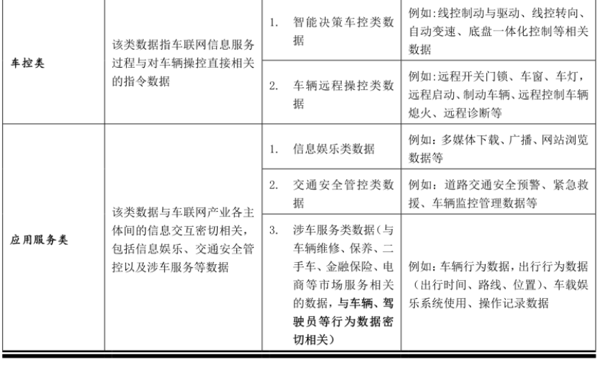 2021年2月,郑州某车主在驾驶某品牌电动汽车发生交通事故后,与该公司展开沟通交涉,并要求提供相应的行车数据。在多次交涉无果后,同年4月,该车主于上海国际汽车展的该品牌展台进行“车顶维权”,引发了舆论关于“行车数据”归属问题的热议。 对此,市场监管部门于4月21日作出回应,根据河南省市场监督管理局批复,生产经营者应当提供其掌握的真实数据[1]。本文将从个人信息保护的视角,探析智能网联汽车行业中行车数据的归属问题。 一、智能网联汽车数据的数据类型 2021年4月7日,国家工业和信息化部发布《智能网联汽车生产企业及产品准入管理指南(试行)》(征求意见稿),其中定义“智能网联汽车”系“搭载先进的车载传感器、控制器、执行器等装置,并融合现代通信与网络技术,实现车与 X(人、车、路、云端等)智能信息交换、共享,具备复杂环境感知、智能决策、协同控制等功能,可实现安全、高效、舒适、节能行驶,并最终可实现替代人来操作的新一代汽车。” 为实现“安全、高效、舒适、节能行驶”,目前,智能网联汽车的系统层次主要包括环境感知、智能决策和协同控制三大系统。其中环境感知层主要利用摄像头、雷达、5G及V2X等技术实现智能网联汽车与外部环境之间的交互;智能决策层的主要功能则是通过识别道路、交通标志、车辆甚至驾驶员疲劳程度等数据,进行关于车辆驾驶的决策分析;协同控制系统则按照决策分析,对车辆进行制动、驱动、转向等操作和协同控制。而这三个不同层次的系统在实现不同功能的过程中,将涉及到种类繁多、范围极广的各项数据[2]。 此外,根据工业与信息化部发布的《国家车联网产业标准体系建设指南(总体要求)》和《国家车联网产业标准体系建设指南(智能网联汽车)》,智能网联汽车系车联网产业[3]中重要的一环。据此,智能网联汽车在提供服务中将有可能与车联网产业链中的各类服务主体发生数据交互,并据此通过多种渠道触及、上传、下载各项数据。 根据2020年9月工信部发布的《车联网信息服务 数据安全技术要求》(YD/T 3751-2020),笔者归纳智能网联汽车可能涉及的数据类型及范围如下(表1):