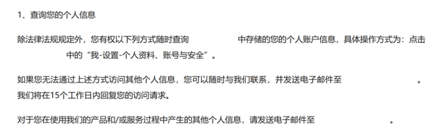 (图1:某智能汽车厂商于官网公示的用户隐私政策截图) 第三,如前所述,智能网联汽车通过直接收集、共享获取等方式触及的数据和个人信息范围非常广泛,存储、展现形式多样化,如何实现个人信息主体的数据访问权将成为技术上的难题。“车顶维权事件”中,涉事汽车厂商最终通过纸质版数据发送给车主共计48页,6697条。而目前市场上智能汽车也向用户提供了多种电子化的途径来行使查询权(图2)。
