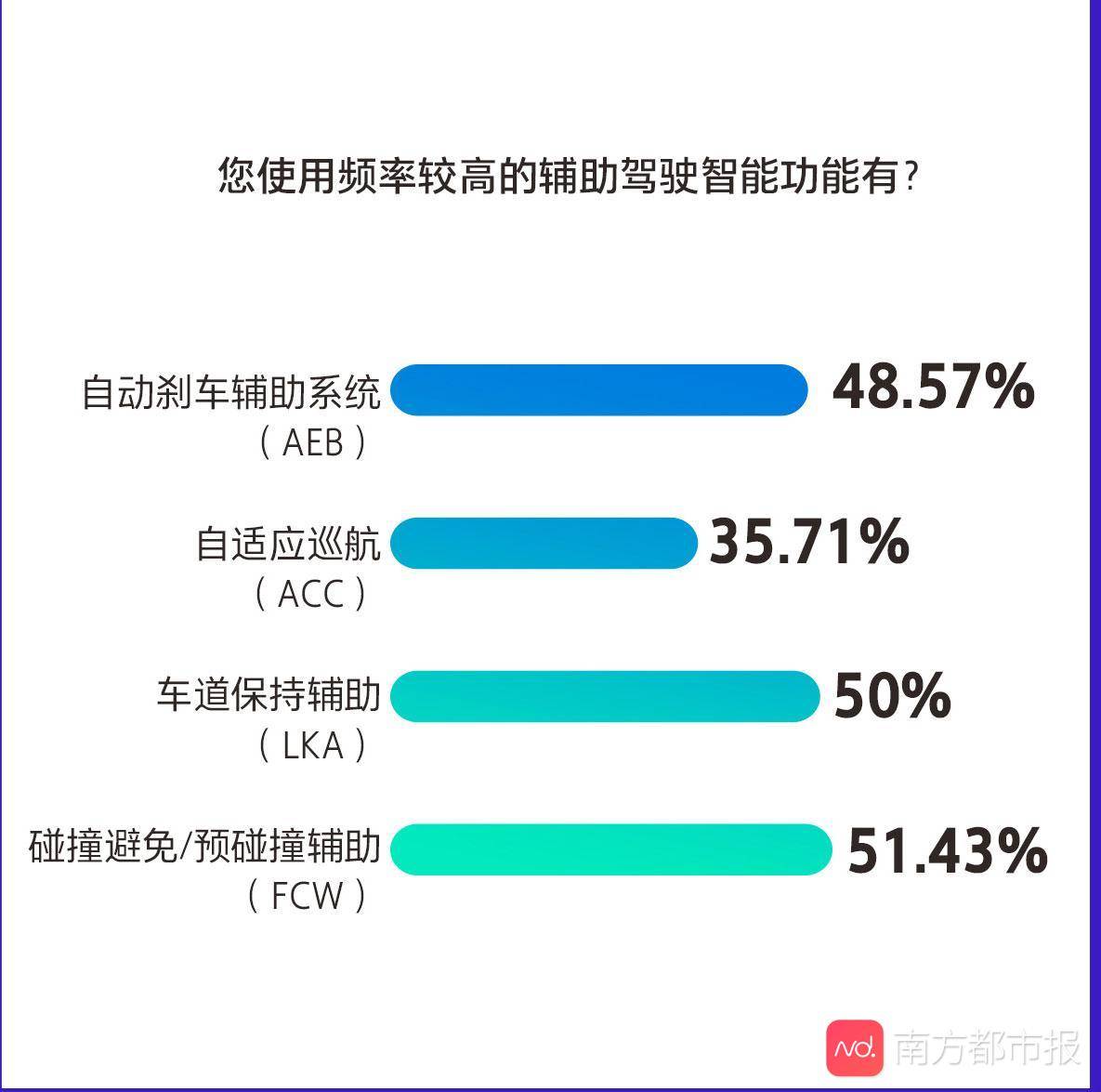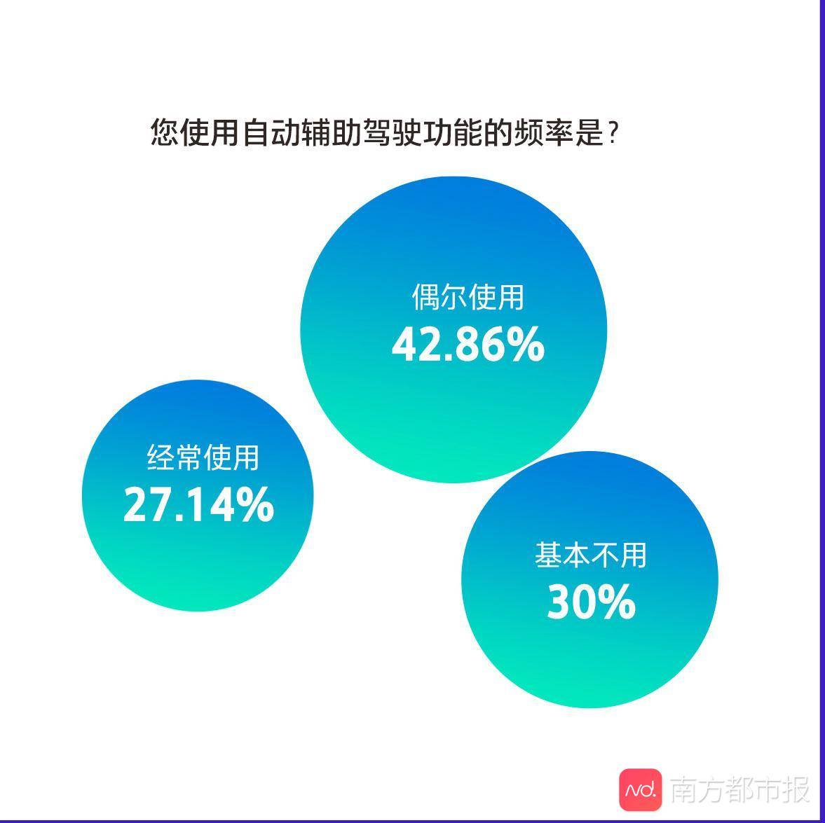 不过,调查数据显示,拥有一辆具有自动辅助驾驶功能的汽车,并不意味着车主会经常使用这些智能功能。相反,有超过40%的车主表示只会偶尔使用辅助驾驶功能,更有30%的车主表示基本不用。