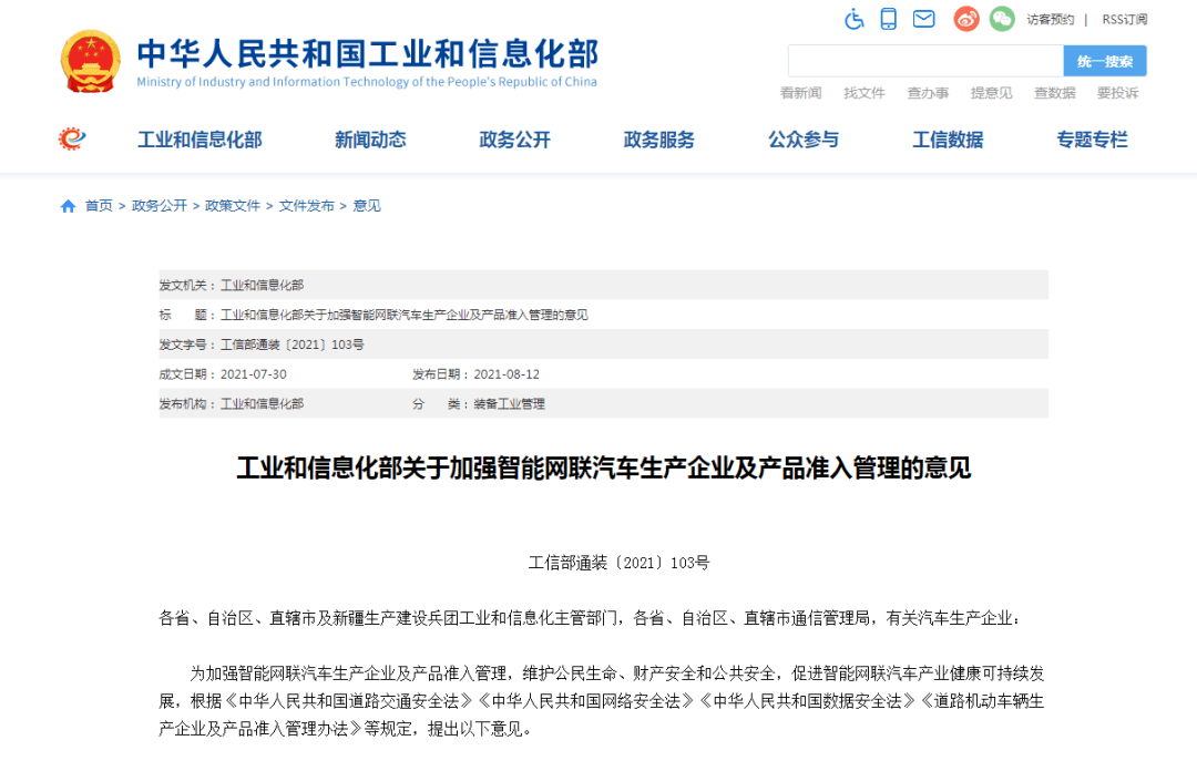车联网未来的发展方向工信部在8月12日发布的《关于加强智能网联汽车生产企业及产品准入管理的意见》中明确指出:强化企业管理能力。企业生产具有OTA升级功能的汽车产品的,应当建立与汽车产品及升级活动相适应的管理能力。
