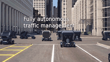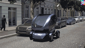 它的尺寸只有2.5m×1.57m,比奔驰的smart还要小巧。更夸张的是,它的车轮能90度旋转,不仅能横着走,还能变形,绝对是倒车杀手终结者。。 ▼智能交通