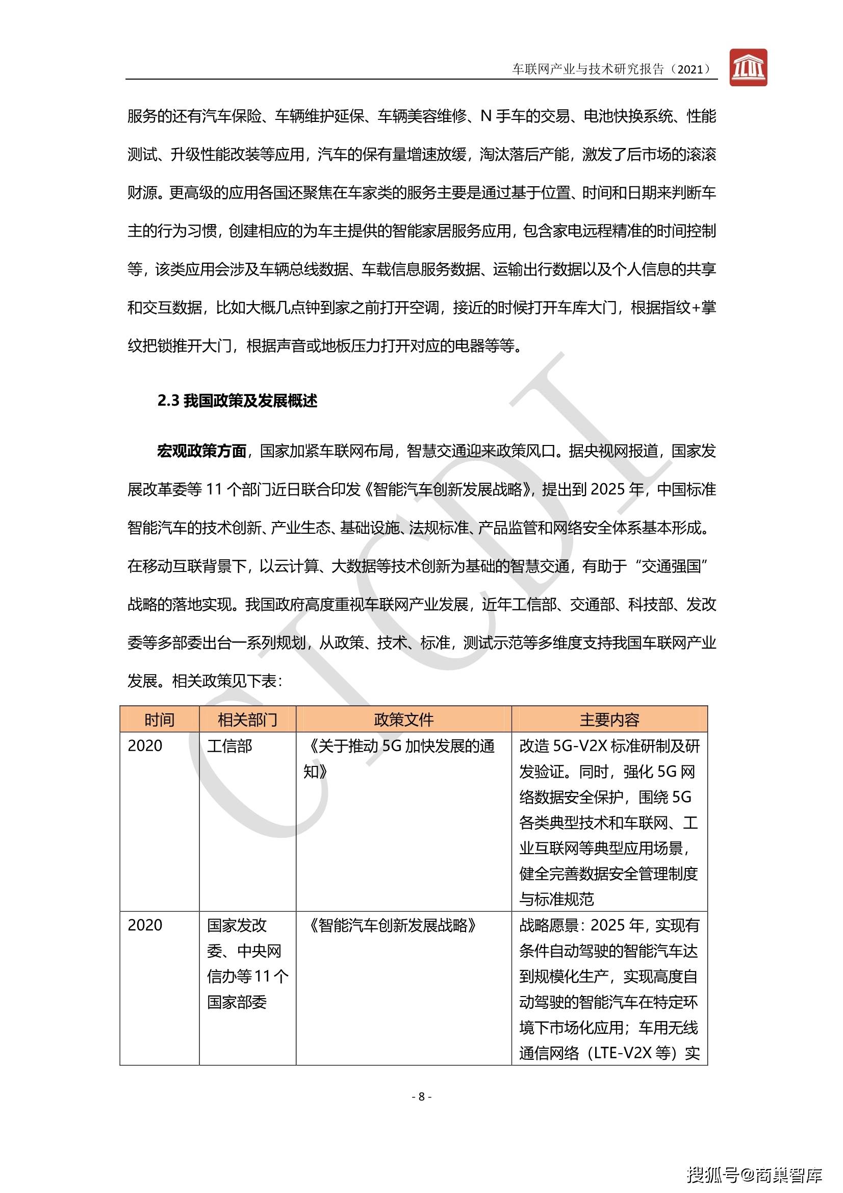 目前,车联网已成为汽车市场增长的引擎,是当今汽车工业的发展方向。从2014 年CES 展开始车联网成为热点,全球十大车企有9 家参展,奥迪、奔驰、福特、丰田均推出了车联网产品与应用,接近10 年的发展车联网已经真正进入高速发展期。5G 技术日渐广泛的应用、短距离通信技术的标准化、及车联万物技术的落地验证,是车联网焕发新生的重要契机。 海量精选内容,公众号:参一江湖