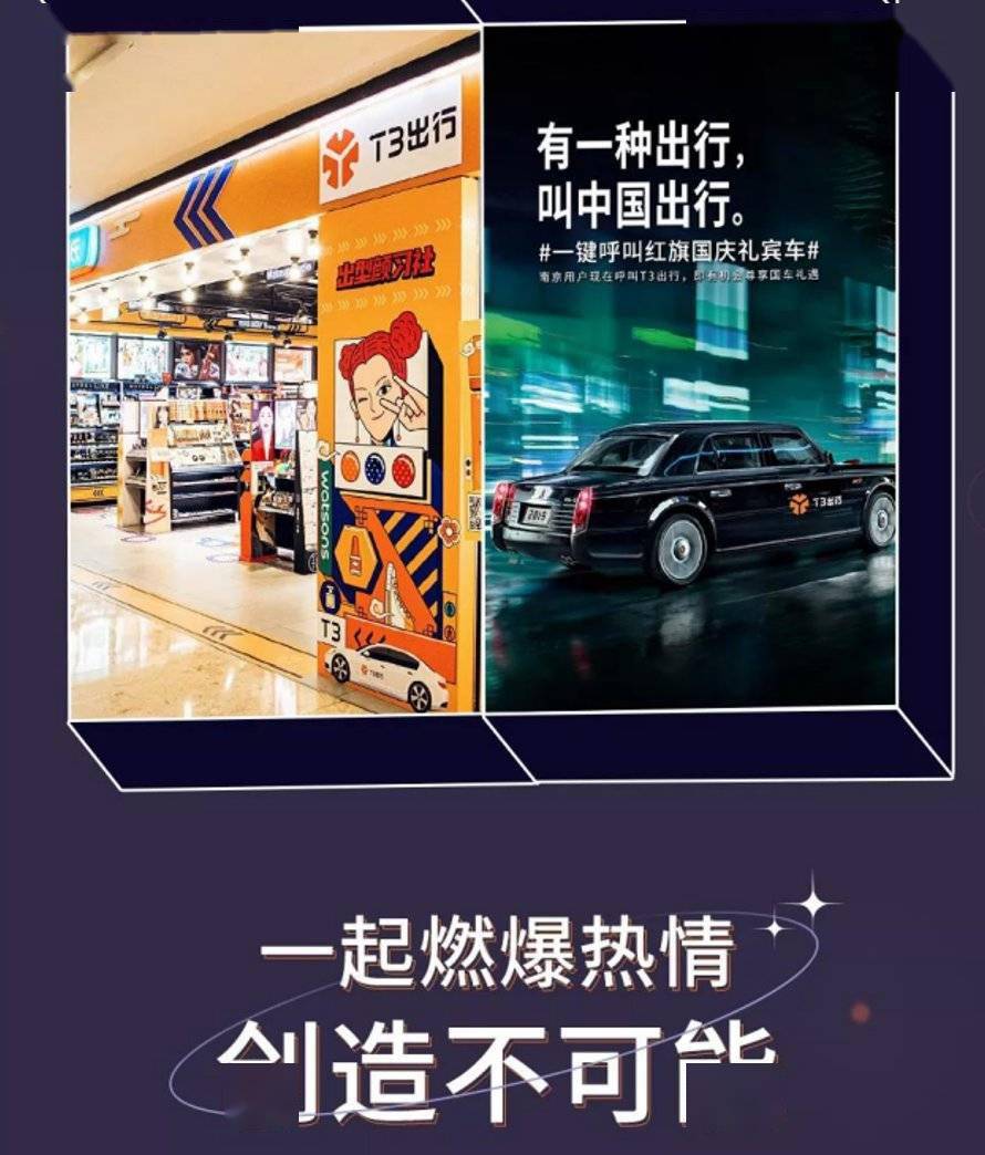 这是T3出行带来的宣传 “我们一直在迁徙,从一个地方到另一个地方,从双腿到车轮,从过去到现在。对出行我们永远怀着美好的期待,也一直保持着有限的忍耐。我们需要安全就像需要空气。我们厌倦等待,等待已无处不在。我们向往着更心动更舒适的旅程,如同拆开一份礼物。我们希望所有的要求都能被再次思考,付诸行动,因为我们永远都需要一个更好的选择。一个新的出行工具真的是必须的吗?是。美好的事情都值得我们为它重新来过。T3出行,重新思考,即可出发。”