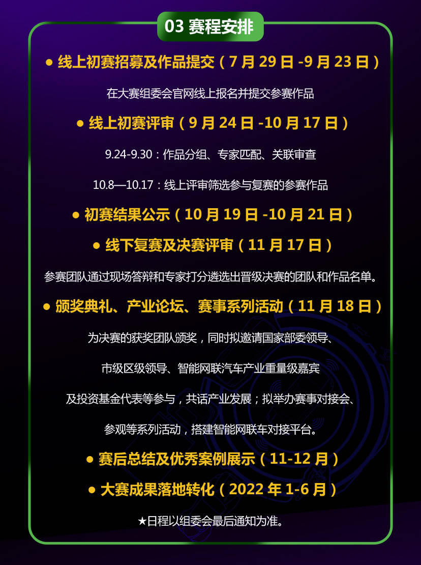 从分布赛道来看,数字化运营服务方面有1家、车联网大数据方面有3家、智能座舱方面有9家、智能驾驶方面有8家、车路协同方面有4家。 从分布区域上来看,浦东新区有10家、嘉定区有6家、杨浦区、长宁区各有2家、静安区、徐汇区、松江区、青浦区、崇明5区中各有1家企业。 从融资轮次来看,有4家已经进入IPO,分别是上汽集团、蔚来汽车、凯众材料、移远通信,且多数企业均完成相应轮次融资,初创型企业较少。 第三届中国工业互联网大赛·“工业互联网+智能网联车汽车”专业赛通过以上分析我们可以看出,我国在智能网联汽车产业的发展中已取得一定成就,但仍然有更多发展空间,未来可期。在未来,智能网联汽车的发展离不开政府政策的支持和资本的加持。第三届中国互联网大赛·“工业互联网+智能网联汽车”专业赛将为各企业提供政策、资本与各项资源上的支持。本次大赛由工信部和国资委等共同主办,大连高新技术产业园区管理委员会、国家工业信息安全发展研究中心、大连市工业和信息化局承办。大赛涉及智能驾驶、智能座舱、智能网联、智能车云、汽车产业数字化五大领域。接下来让我用一图为你揭秘“工业互联网+智能网联汽车”专业赛!