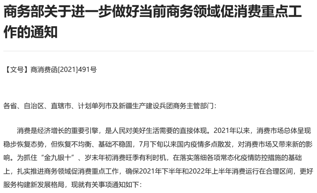 9月16日,商务部印发《关于进一步做好当前商务领域促消费重点工作的通知》。 通知称,消费是经济增长的重要引擎,是人民对美好生活需要的直接体现。2021年以来,消费市场总体呈现稳步恢复态势,但恢复不均衡、基础不稳固,7月下旬以来国内疫情多点散发,对消费市场又带来新的影响。为抓住“金九银十”、岁末年初消费旺季有利时机,在落实落细各项常态化疫情防控措施的基础上,扎实推进商务领域促消费重点工作,确保2021年下半年和2022年上半年消费运行在合理区间,更好服务构建新发展格局,现就有关事项印发通知。 《通知》的有关事项包括三个方面共14项重点任务和保障措施。其中:重点任务(一)加力稳住大宗消费重点消费提出,一是促进新车消费。加快推动汽车由购买管理向使用管理转变,破除制约汽车购买使用障碍,释放汽车消费潜力。支持新能源汽车加快发展,会同相关部门深入开展新能源汽车下乡活动。二是扩大二手车消费。鼓励二手车经销企业品牌化、连锁化经营,推动流通模式创新。加快推进二手车异地交易登记跨省通办。推动落实取消二手车限迁政策。积极协调配合相关部门依法加强二手车市场监管,规范市场秩序。支持符合条件的企业开展二手车出口业务,有序扩大二手车出口规模;(二)促进新型消费加快发展提出,壮大绿色循环消费,鼓励有条件的地区对居民淘汰国三及以下排放标准汽车并购买新车给予补贴。 (来源:商务部) 公开征求《轻型汽车能源消耗量标识 第1部分:汽油和柴油汽车》等七项强制性国家标准的意见