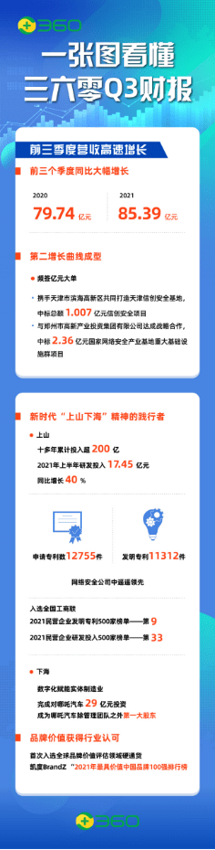 数字化安全:高研发助推政企业务持续高增长 360前三季度营收的持续增长主要缘于第二增长曲线的成型。从2021上半年财报可知,面向政企的网络安全业务营收同比增长322%,半年收入规模已超2020年全年,占公司总营收比例提高至近1/5,网安实力进一步获得市场的认可。 随着中国的数字化进程进入快车道,网络安全问题越来越受到关注。媒体披露的国家工业和信息化部即将正式印发的《网络安全产业高质量发展三年行动计划》显示,到2023年中国网络安全产业规模超过2500亿元,政策利好将进一步助推中国网络安全产业进入爆发期。 作为“网安龙头”,360多年的投资布局,目前正在步入收获期,客户拓展方面频现亿元大单签约,包括与郑州市高新产业投资集团有限公司达成战略合作,中标2.36亿元“国家网络安全产业基地重大基础设施群项目”;携手天津市滨海高新区共同打造天津信创安全基地,中标总额1.007亿元信创安全项目等。 频签上亿大单背后,是360十多年来对技术的执着追求,以及在研发上的持续投入。在9月召开的2021乌镇世界互联网大会上,360董事长、创始人周鸿祎提出中国互联网企业应该坚守科技报国的信念,发挥新时代“上山下海”的精神。“上山”是攀登科技高峰,解决国家核心技术“卡脖子”的问题;“下海”是数字赋能,甘当传统企业的配角,用技术、人才、资金支持传统企业的数字化转型。 网安行业是技术密集型企业,360坚持在核心技术研发上保持高投入。十多年来,360累计投入研发资金超200亿元,仅今年前三季度,360的研发投入便高达24.42亿元,同比增长超21%,投入规模远超同业。在高研发投入的加持下,360不仅收获了世界级的漏洞挖掘与攻防对抗能力,更积累了海量全网安全大数据以及近万件原创技术和核心技术专利。 10月11日,全国工商联正式发布了“2021民营企业研发投入500家”榜单,以及“2021民营企业发明专利500家”榜单。无论是“研发投入”还是“专利数量”,360都是惟一跻身前五十强的网络安全公司。其中,360在专利数量排名中位居第9,在研发投入中排名位居33。国家专利数据库数据显示,截至2021年9月, 360累计申请专利12755件,发明专利11312件,是网络安全行业中拥有专利数量最多的公司。 数字赋能:投资哪吒29亿元,布局车联网蓝海市场 如果说持续加大研发投入是“上山”的体现,那么360与哪吒汽车合作,赋能汽车制造业数字化转型,则为对“下海”的诠释。 10月25日,360公司发布公告显示,360投资29亿元入股哪吒汽车一事已经履行完成相关政府主管部门所要求的程序,投资的相关协议已经签署完毕,成为除管理团队外的第一大股东。 相关数据也印证了周鸿祎的战略眼光。今年以来,哪吒汽车已连续8个月创下交付记录。今年9月,哪吒汽车交付量为7699辆,同比增长281%,连续两个月、同时也是今年第三次进入造车新势力三强,打破了造车新势力既有的“蔚小理”格局;今年1-9月,哪吒汽车累计交付41427台,同比增长425%。 投资哪吒汽车显现了360在智能网联汽车安全市场的战略布局,在工信部披露的三年计划中,重点强调了车联网安全的重要性,表示支持车联网安全技术创新和解决方案研究与推广应用。 360从2014年开始涉足车联网安全研究,并成立了专门的研究团队Sky-Go,造就了全球领先的车联网安全技术。作为车联网安全领域最早的入局者,360积极构建车联网安全生态,入围工信部车联网安全试点项目,牵头全球首个车载入侵检测系统评估标准获批立项,还面向车企发布了免费开源的“车联网安全守护计划”,协助智能网联汽车产业链上下游企业快速建立汽车网络安全监测能力,与行业共建健康有序的车联网安全生态。目前,360已经与10多家车企建立汽车安全联合实验室,保护了上千万辆汽车的安全。 据悉,360将深入研究智能网联汽车的安全问题,将哪吒汽车打造为智能网联汽车安全的标杆,进而为全行业车企及产业链伙伴提供安全服务和保障。 网安实力获得市场认可,研发投入回报可期,投资哪吒赋能实体制造业,360今年呈现全面布局,多点开花的发展态势,公司品牌价值亦随之提升。10月18日,有“全球品牌价值评估领域硬通货”之称的凯度BrandZ发布“2021年最具价值中国品牌100强排行榜”,360成为惟一上榜的网络安全公司。 免责声明:本文仅供参考,不构成投资建议。 广告返回搜狐,查看更多 责任编辑: |