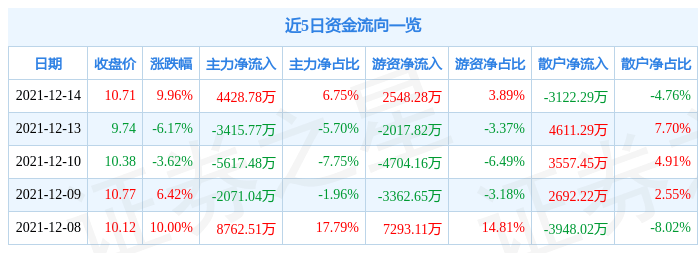 资金流向数据方面,当日主力资金净流入4428.78万元,游资资金净流入2548.28万元,散户资金净流出3122.29万元。近5日资金流向一览见下表: