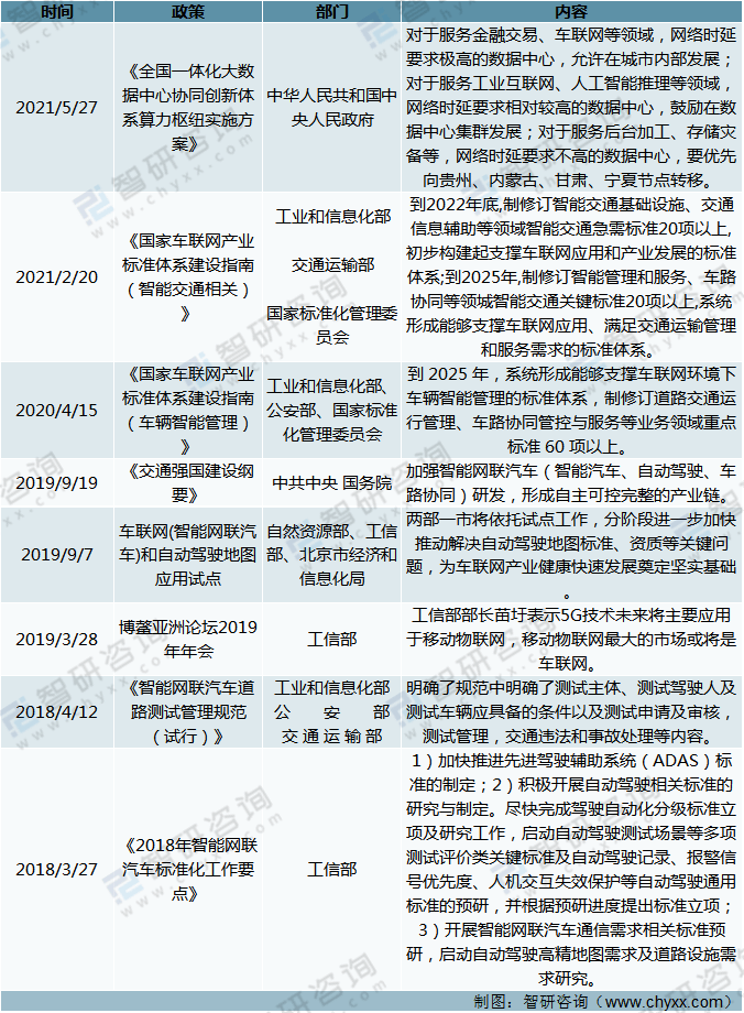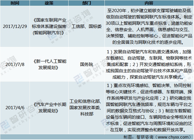 资料来源:政府官网、智研咨询整理 国家部委“车联网”相关政策分析(二)