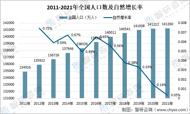 资料来源:智研咨询整理 三、车联网行业社会环境分析(S) 2021年末,全国人口为141260万人,比2020年末增加48万人;全年出生人口1062万人,比2020年减少140万人;死亡人口1014万人,比2020年增加16万人。人口出生率为7.52‰,比2020年下降1.00个千分点;人口死亡率为7.18‰,微升0.11个千分点。人口基数的增加为车辆网的发展提供了巨大的潜力市场。 2021年居民人均消费支出及构成(单位:元)