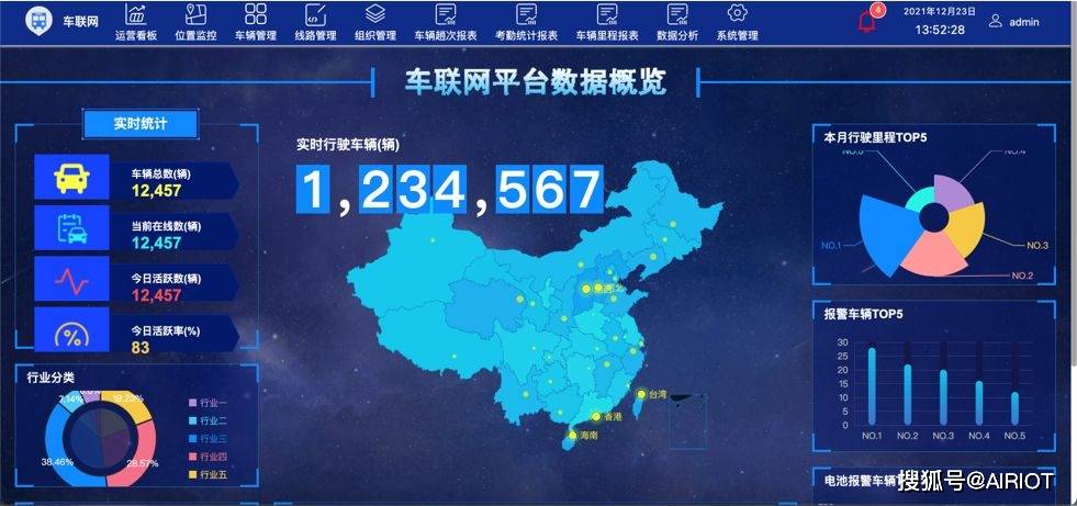 航天智慧车联网综合服务云平台 GIS实时显示车辆信息:GIS的综合信息服务平台左侧以公司为一级目录,显示平台中的车辆数,点击相应的车辆,右侧GIS模块实时显示车辆的位置、行驶轨迹信息,可以在地图上设置电子围栏,保证车辆行驶的可控性,通过点击车辆图表,可以查看该车辆的具体信息,包括车牌号、终端ID、行驶速度、车组名称等。 自定义报表:以AIRIOT物联网低代码平台实现用户自定义报表功能,数据的展现不需要代码编辑,只需要通过选择即可,同时报表编辑时,支持用户进行公式编辑,满足了用户对于数据报表的要求,可高效完成报表编辑,节约了大量时间成本与人力成本。 以AIRIOT物联网低代码平台作为底层技术构建的“航天智慧车联网综合服务云平台” 被某部委认定为全国首批符合部颁标准的省级政府监管平台之一,在全国31个省级平台中第一个接入全国重点营运车辆联网联控系统,也是全国第一个入网北斗终端数量过万的平台与通过省级科技成果鉴定的北斗平台。 目前接入北斗车载终端超过26万台,是国内最大的北斗车联网平台之一,为政府部门执法取证和运输企业安全高效运营提供了大数据支持,有力保障了道路运输安全。返回搜狐,查看更多 责任编辑: |