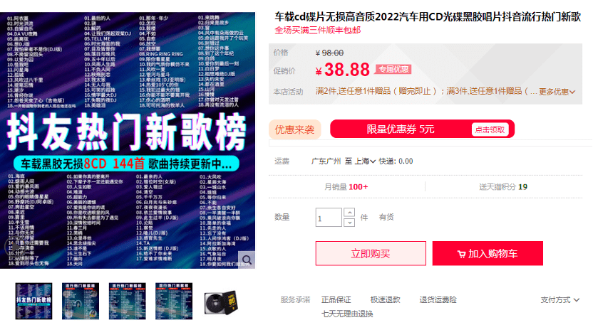 对于RX车主来说,高音质的CD能够高程度发挥到车载的马克莱文森音响上,这也是他们认为CD机存在的必要。 但CD的音质并不是统一的,44kHz和16Bits的最低标准是指正版公司刻录的CD,单张价格80左右,高阶的价格300-500不等,至于淘宝上那些33块钱100首歌的那种,其实你自己在家也可以用光刻机刻录——但音质优势也就荡然无存。