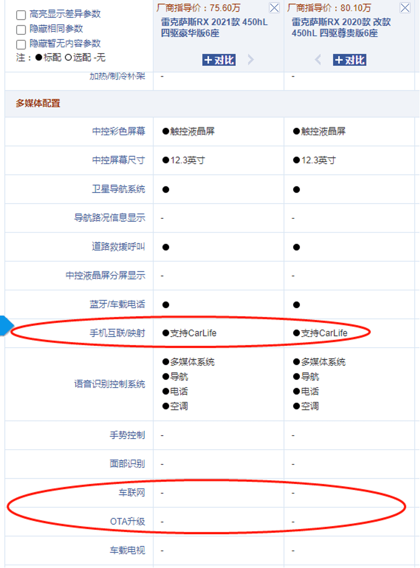 听到这里,RX车主可能打开手机下载QQ音乐进行充值了,那么在“奢侈”这个领域上,他们又进了一步。 “我花钱买,我有,我不用,我再买别的来用。” 5 < 矛盾 > 诚然RX这台车型有着非常多属于雷克萨斯标签的优秀特点,非常柔软的座椅和极其舒适的悬挂,缩小了发动机舱提供到的充沛后排空间,纺锤形前脸和棱角大灯带来的典雅造型,甚至马克莱文森的音响、通风加热的真皮座椅等等硬件都是产品力高的体现。 只是这一切建立在40-80万的价格上的时候,一切都变得理所当然而不惊艳,而网络配置上的落后则又导致了额外资金的流出更是让它失去了本来“节俭”的属性,变的“奢侈”起来。