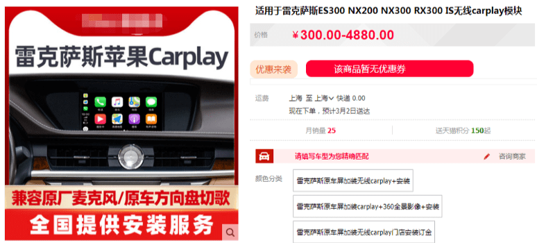 继续向下深挖,就会发现苹果手机在app store中可以下载carlife,然后通过无线连接,投屏到RX的中控屏上。不过由于兼容性和多转换的原因,整个操作系统其实远不如Carplay流畅。 别停下,继续挖,把中控送去汽修店拆掉,让懂行的师傅私自给你加装一套carplay的组件。但毕竟是小拆一下车,影不影响本来很高的保值率,会不会伤害到汽车本身安全性都没人知道。