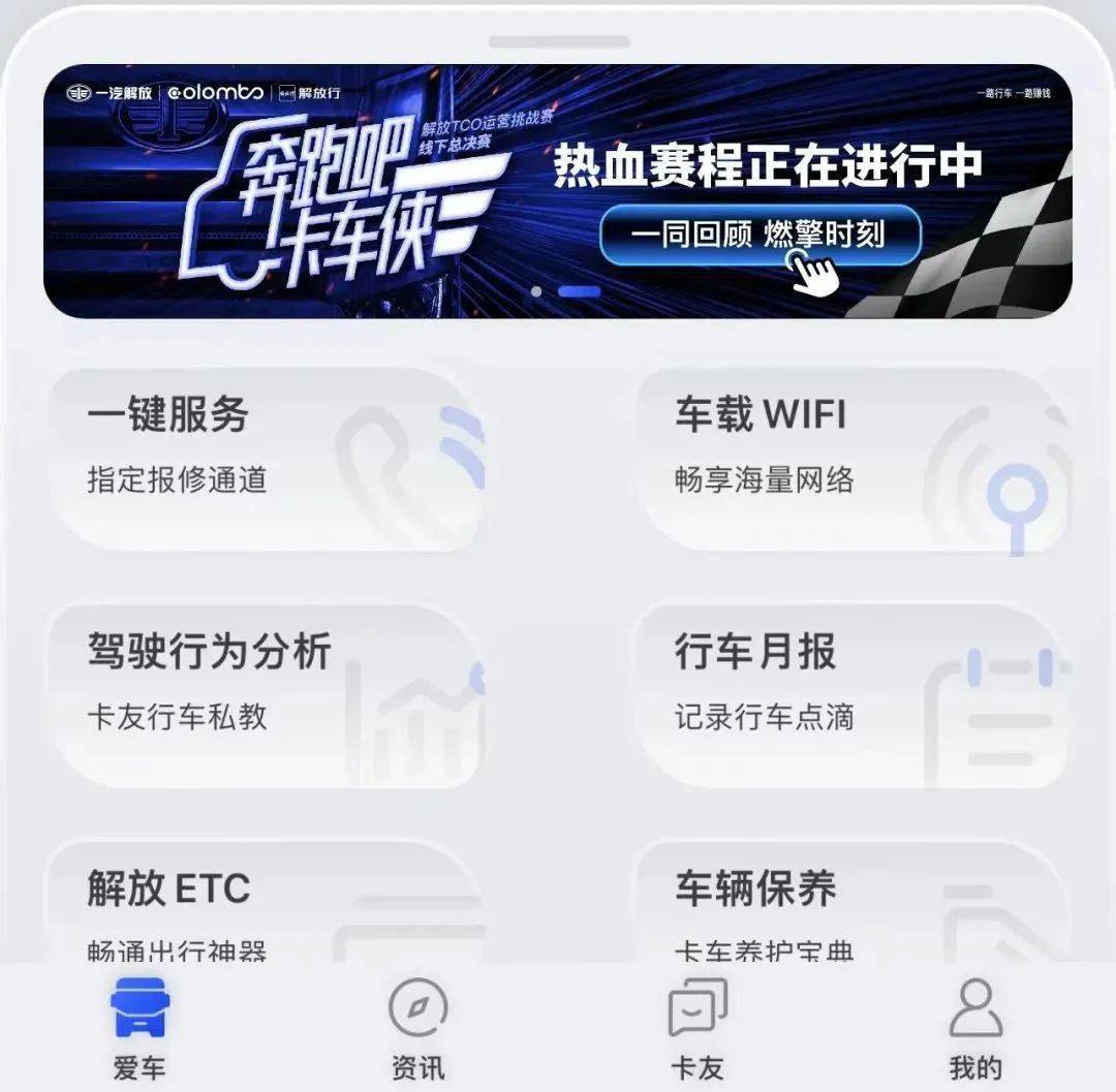 “解放行”app界面展示 在用户及生态运营方面,2021年C端产品“解放行”换新发布,定位于为卡车人提供用车工具和社交圈层,给广大卡友行车、用车进行赋能,带给解放用户归属感。为解放用户提供车辆监控、数据分析、线上营销、生态服务、社交娱乐五大类别服务,覆盖用户选、购、用、管、修、换全生命用车周期,聚焦解放司机群体,让用车、养车更科学、更简单、更省钱,让货运生涯更轻松、更愉悦。 场景聚焦 优化车联网大数据应用效果 一汽解放车联网聚焦自身商用车业务领域,基于大数据处理、AI算法等技术,通过数智赋能解放,优化公司现有研发、销售、供应链等业务流程。
