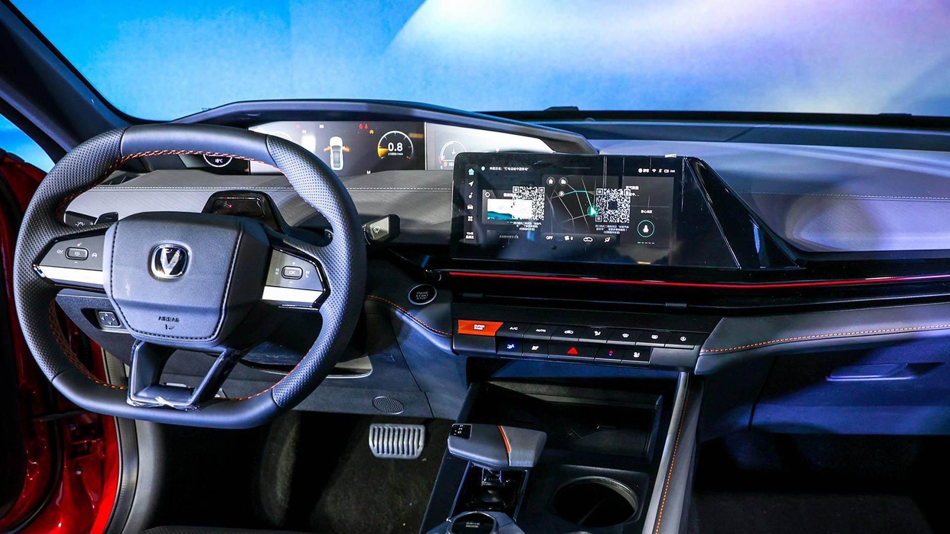 接下来就到了官方指导价11.69万元的1.5T 尊贵型,相较入门版卓越型,新车贵出了8000元。 8000元的升级主要在于“科技范”,疲劳驾驶提醒、电动扰流板、电动后备箱、方向盘换挡、手机无线充电、副驾驶座椅电动调节、64色氛围灯、三指飞屏互动、手势识别、面部识别这些配置均有出现,科技氛围绝对是够够的,尤其是电动扰流板的出现,直接给足了大伙面子。 除去上文提到的这些配置外,还多出了后排中央扶手,喇叭也由6个升级为8个。不过,由于电动扰流板的出现,从次低配车型开始,长安UNI-V将不再支持天窗开启,仅提供一块不可打开的大尺寸天窗。 整体来看,11.69万元的1.5T 尊贵型版本主要升级集中在科技部分,8000元的差价并不贵,对追求品质生活的人群而言还是值的。不过如果你预算有限,且不追求科技感、运动范的话,还是入门版本更适合你。 运动版车型加入专属声浪,个性消费者首选