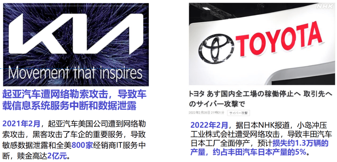 智能网联时代,汽车安全已经从“牛顿定律”的运用升级成为了《孙子兵法》的攻守之道,知己知彼,方能百战不殆。 2017年,电影《速度与激情8》中黑客非法远程控制一批自动驾驶车辆按照其意愿行驶的桥段给观众留下深刻印象。 现实中,类似的情节实则上演得更早。2014年,黑客利用汽车的数字服务系统漏洞,远程打开车门,让220万辆汽车受到影响;2015年,黑客远程入侵一辆正在行驶的汽车,并做出减速、制动等操控,该汽车厂商因为上述的这个漏洞召回了140万辆车,并被罚款1.5亿美金;2016年,中国一安全实验室通过远程控制,实现对某电动车品牌的车内设备和行车进行任意控制……