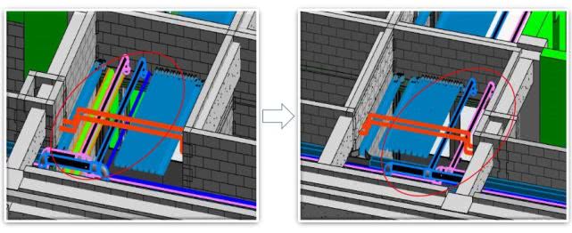 三维场布 (2)碰撞查抄:哄骗Revit,MagiCAD等软件建立出建筑布局、暖通、电气、给排水等专业的三维模型,会同各专业工程师进行优化讨论。凭据碰撞检测陈述,出具模型调整优化方案,以调整优化模型并到达施工要求。尤其是对关头部位和关头管道进行预排布,经各方评审和论证后再凭据最优方案,建立实体三维模型,防止了后续返工的风险。