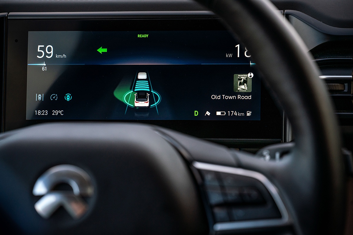 全车硬件设置装备摆设对付辨认交通道路标志、标示相当首要,NIO Pilot可以经由过程使用ES8的三目摄像头,和综合导航体系中的限速信息,检测道路上的限速标志,而且直接投射到驾驶员火线的仪表盘中,从而可以到达辅助查看速率标示的作用。在现实运用中,高速上一晃而过的标示简直可以经由过程这项功能辅助完成。