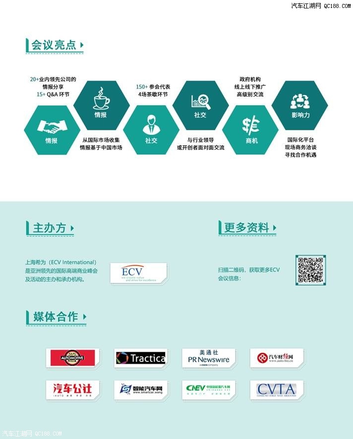 2019中国汽车底盘创新国际峰会将汇集国内外超过150名知名业内专家和高管,他们来自汽车底盘产业链的各个环节,如整车公司、一级供应商企业、汽车电子公司以及学术界等,这些业内人士将一起就底盘行业最重要和最热门的主题进行探讨,例如:底盘系统的电气化、自动驾驶对底盘系统的影响、底盘系统的轻量化、适应ADAS的转向系统的架构,以及悬架系统在新能源汽车中的改变等。本届峰会将提供一个很好的平台,让业内人士不仅能获取最新的底盘创新技术信息,同时也能与该领域专家进行深度交流,并开拓新的商业机遇。 联系我们 联系人: Holly Wei 电话:+86 21 8026 0707-819 邮箱:hollyw@ecvinternational.com 关于希为 上海希为(ECV International)是亚洲领先的国际高端商业峰会及活动的主办和承办机构,拥有近 200 位行业研究及活动策划、运营专家,每年在全球举办约 40 场高端国际峰会,涉及汽车、零售、纺织、鞋业、物联网、新科技等行业。 我们为超过半数的财富 2,000 强企业提供专业的商业会议及咨询服务,每年有超过 6,000 位来自戴姆勒、通用电气、阿迪达斯、可口可乐、阿里巴巴、ABB等跨国公司、专业机构及创新企业的决策人参加我们的会议和活动。 我们的使命是通过提供专业服务帮助客户抓住发展机遇、迎接挑战、实现全球范围内的可持续发展,进而影响行业格局,引领行业未来。 |