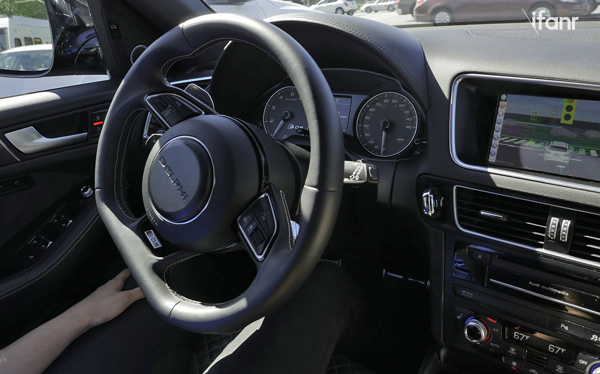 感觉就像是人类在开车一样。 试乘完英特尔和德尔福合作研发的这辆基于奥迪 SQ5 车型的无人驾驶汽车后,我对工作人员说了这句话。腾讯视频链接这辆无人驾驶版的奥迪 SQ5 用上了德尔福和 Mobileye 共同开发的 CSLP(中央传感定位与规划)自动驾驶系统,车身配备了 6 个近程雷达、1 个前置成像雷达、1 个尾部远程雷达和 5 个激光雷达,此外车身前后还装上了 7 个不同作用的摄像头——听不懂没关系,它们就是用来的全方位搜集车辆周围的信息的,而且它们都是可量产的传感器。 这些硬件所搜集到的所有数据,都会交给车上的英特尔 Intel Go 自动驾驶计算平台处理,自动感知周围环境并做出相应反应。 除此之外传感器搜集到的各种关于周围环境的数据也会经过可视化处理,显示在中控台的屏幕上,乘客可以实时看到道路周围的信息。 试乘的路线是绕着圣何塞英特尔总部周围的几条道路,总时长约 10 分钟,轮到我试乘的时候大概是下午四点左右,路上车不算太多。 上车之后,我跟驾驶座上的工作人员打了招呼。为保证安全,在车辆启动后她都不能跟任何人说话,随时准备好人工接管这辆车。不过这也只是以防万一。