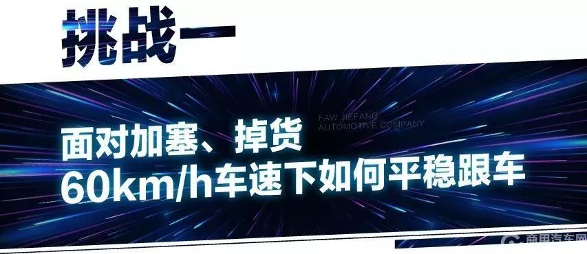 胡总的讲述引起了现场佳宾的猎奇 主持人随即颁布领会放J7的应战内容 J7无人驾驶应战 2辆无人驾驶智能J7 取2辆有人驾驶J7构成车队 配合输送第713万辆解放卡车配件 车队需胜利通过10千米极限路段 并保障人、车、配件的无缺