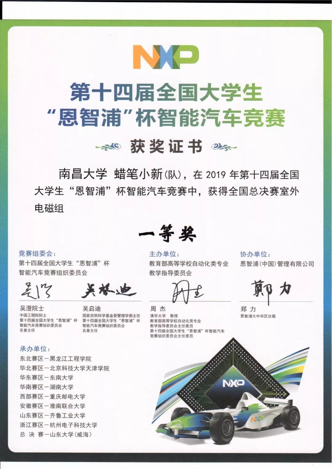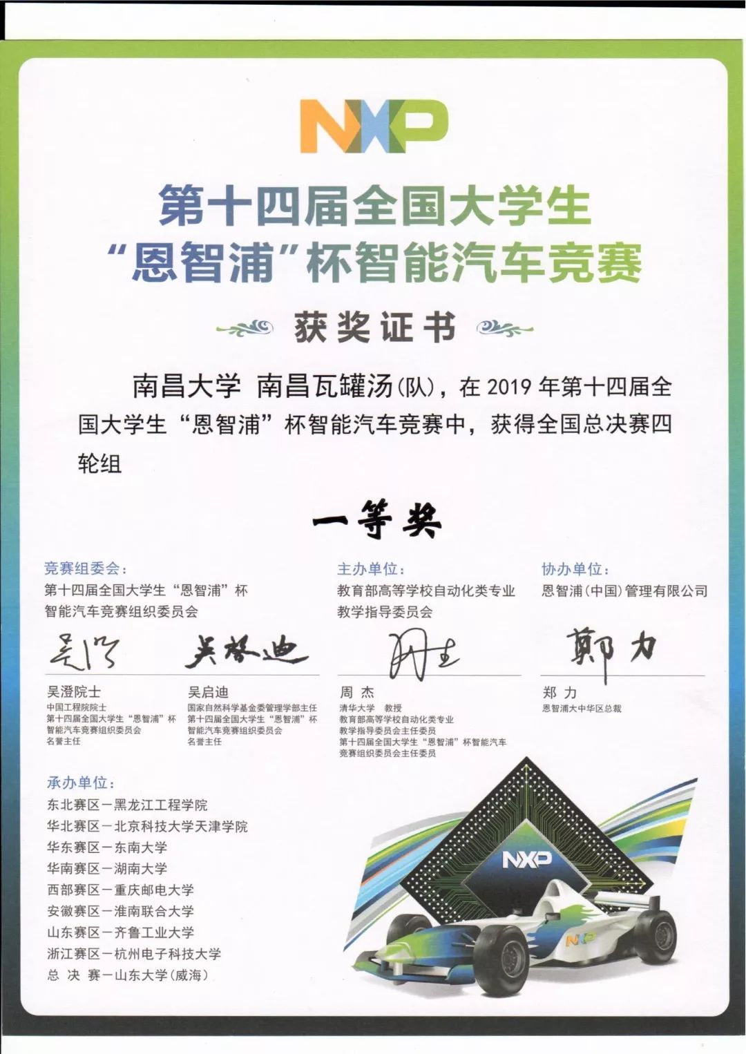 近日,第十四届全国大学生“恩智浦”杯智能汽车竞赛全国总决赛在山东大学举行,南昌大学智能车竞赛基地6个项目组进入总决赛,最终获得全国一等奖5项,二等奖1项。一等奖获奖数量居全国第五,是我校参赛以来历史最佳成绩。另外在附加的公路赛比赛中,南昌大学获得二等奖3项,三等奖2项。