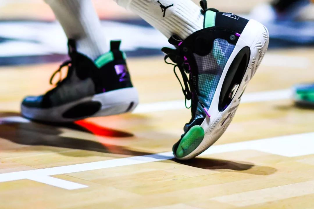 说了这么多,究竟Air Jordan XXXIV会在赛场上有怎样的表现,又会给我们带来什么样的惊喜,再甚至说,那轻薄到以半透明效果呈现的鞋面又是否禁得住实战的蹂躏,带着这些疑问,我们穿上了Air Jordan XXXIV,走到了球场上。