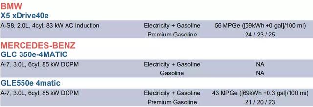 (在EPA发布的《FEG2018》里,宝马X5 xDrive40e和GLE 550e 4MATIC纯电模式综合百英里电耗分别是59度和69度,折合百公里分别是36.7度和42.9度。) 也就是说,和2018款GLE 550e 4MATIC相比,全新的GLE350 de 4MATIC的纯电模式能耗进步了一大截。 一个柴油插混,一个汽油插混,可比吗? 当然可以!注意审题,这是纯电模式下的能耗,和用的是什么内燃机无关。 小车适合纯电,大车适合插混。 像奔驰GLE、宝马X5这种四驱SUV,即使是柴油版,真实的市区工况油耗也很高,但是有了插混,即使在匮电状态下,也就是混动模式下,在市区也能大大降低油耗,比如宝马X5 xDrive40e,混动模式下市区百公里油耗不到9.8升(EPA数据),GLE350 de 4MATIC实际油耗当然更低,而且由于其超长的满电续航,在市区完全可以当做一款纯电动车去开,出城再用油——这时油耗其实也不高,从此,开一台大型SUV,再也没有高排放所带来的罪恶感了。 这是又一种鱼和熊掌得兼。