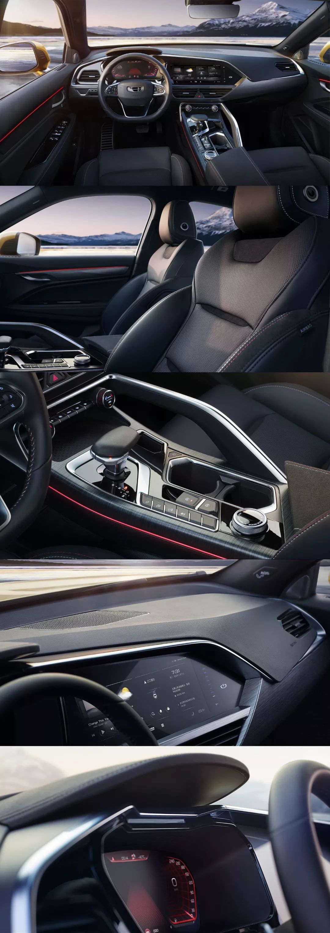 吉祥星越的外部空间凹隐了奢华取科技。年夜里积硬量质料及实皮的包覆使用,晋升了外部总体的奢华空气,而仪表盘取外控台的连屏设计、星轨跃动副仪表台等不只别具一格,更取奢华Bose声响、GKUI 2.0、L2级智驾、9寸齐彩HUD、人脸辨认FACE-ID等设置装备摆设营建没具备科技感的沉醉式感官座舱。别的,巴黎入口香氛体系、无线充电、寒暖杯托、吸呼空气、电动感想首门等人道化设置装备摆设,也展示了格调取档次。