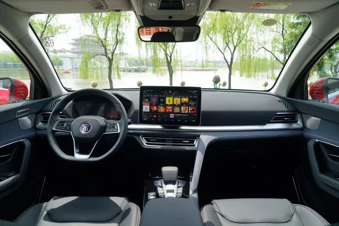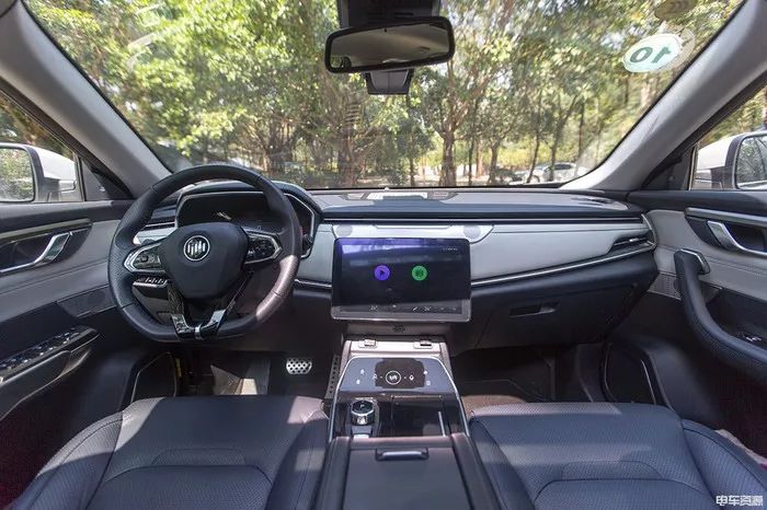内饰外型比力简便,采纳了年夜里积的皮革取硬量质料包裹,总体的量感很是没有错。齐系标配皮量多罪能标的目的盘、12.3英寸的齐液晶仪表盘和12.8英寸的选拆式悬浮外控年夜屏。