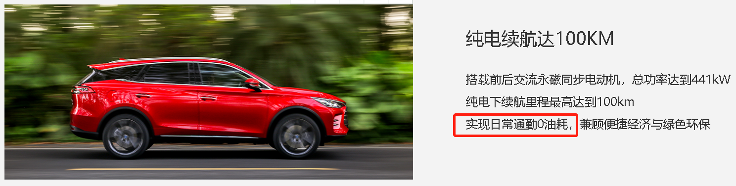但总感受如许 比拟亚迪唐 DM 这类 杂电续航面程少的车来讲 孬盈啊 亮亮能作到“百千米 0 个油”的 固然比亚迪仍是至关粗于言语的艺术的 官网写的是“一样平常通勤 0 油耗”