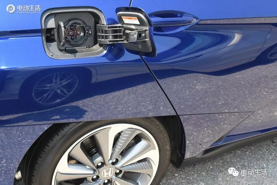 原田Clarity交流急充接心位于车辆右前翼子板上,盖板中里有一个PLIG-IN代表插电的身份。