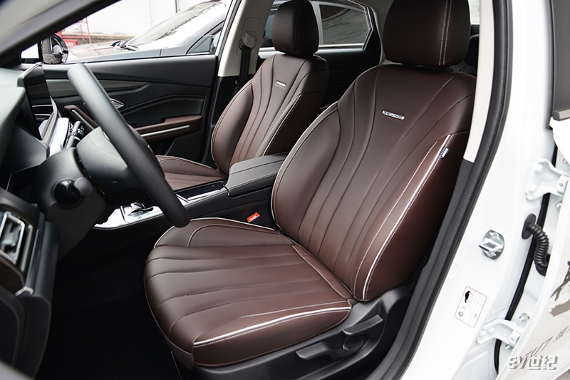 EU7的座椅材量齐系均采纳了皮量里料,分歧的是,图外的低配车型为人制皮革,纹路较为简略。而下配车型则使用了材量以及脚感更超卓的实皮里料,其纹路更具奢华感。 另中,下配车型借设置了前排座椅添暖和座椅透风罪能。