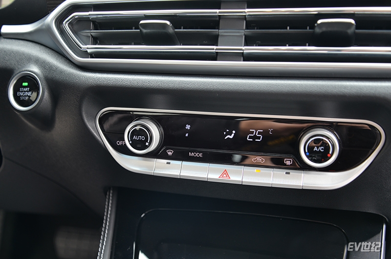 外控里板上为数未几的真体按键,便是一键封动按钮,和空调节制区域,双色液晶屏共同明乌以及银色构成的里板望起来量感没有雅。