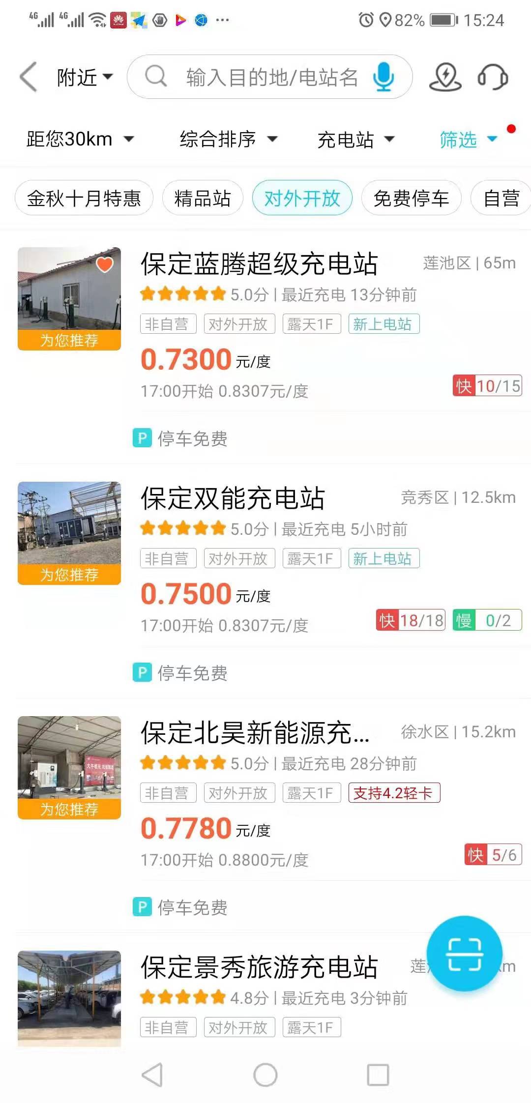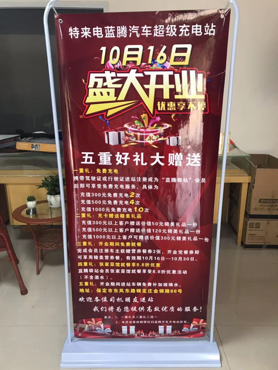 10月16日,保定特回电蓝腾超等汽车充电站邪式投进运营,该充电站位于保定东下铁站取保定客运中间之间的银定庄村,松邻河南硬件教院,共有15个特回电超等充电桩,天天至多否为新动力杂电动汽车提求720辆车次充电。
