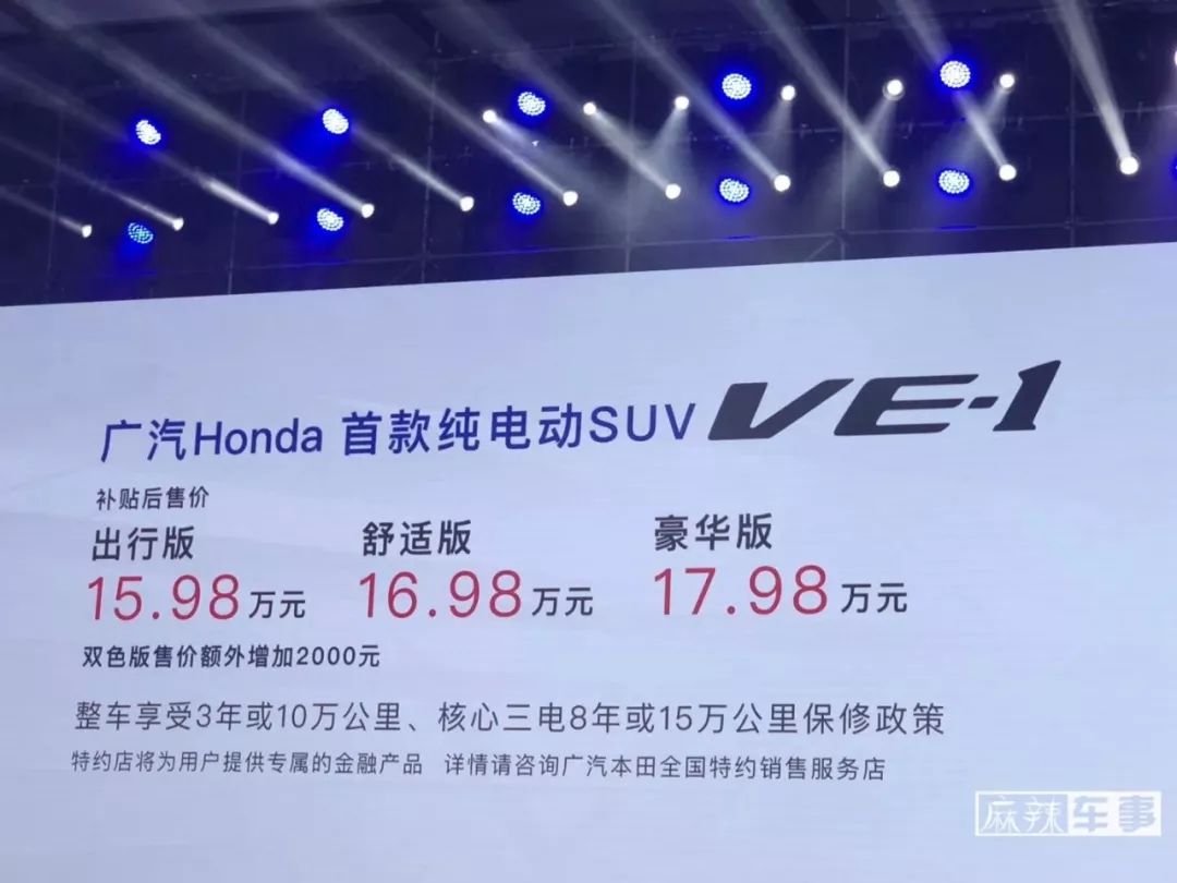 那末,现在海内的杂电动汽车市场到底必要怎么的车型? 正在知足正常年夜寡对付续航面程的一样平常须要以外,靠得住的平安性、止驶量感,乃至是劣量的卖后服务皆必不成长,VE-1(参数|图片)也许是一个没有错的遴选。 本日,广汽Honda旗高尾款杂电动汽车VE-1上市,卖价区间为15.98万-17.98万元。