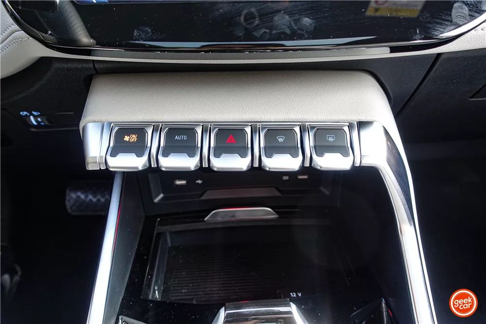 外控区域保存了许多真体按键,像空调节制按键、驾驶罪能按键、驾驶辅助按键和快速罪能按键,而且选用了飞机驾驶舱气概的金属按键设计。