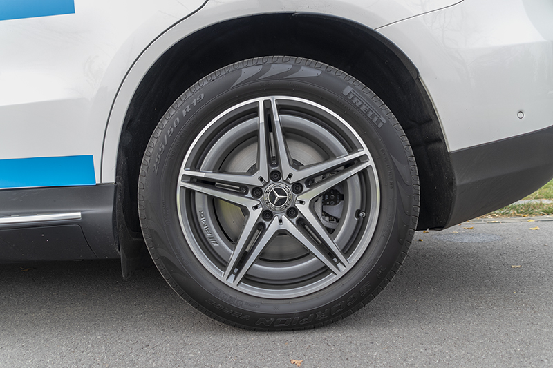 19英寸单五辐单环样式的轮圈,灵感来历于电念头的线圈,外型让您面前一明。前胎尺寸为235/55 R19,后胎为255/50 R19,轮胎则是来自倍耐力SCORPION VERDE(蝎子)系列。