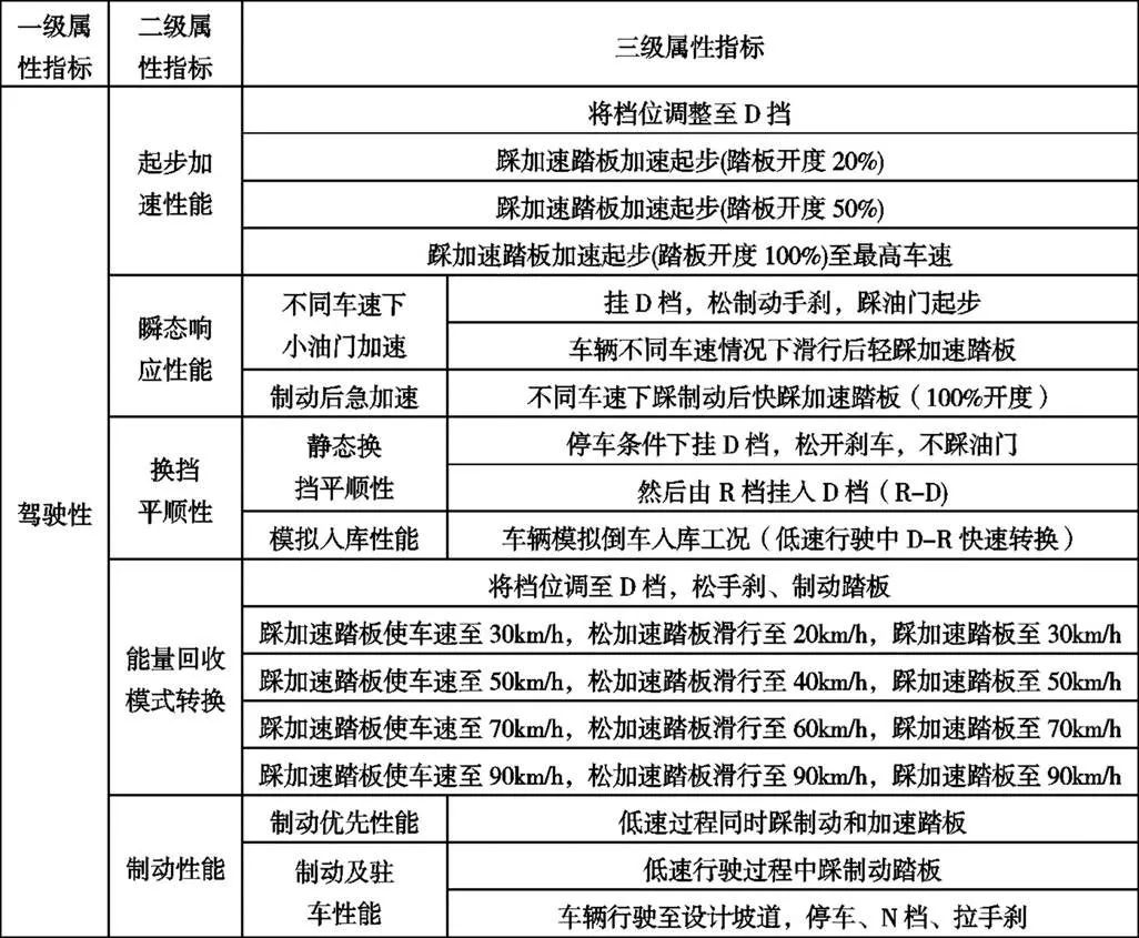 以上各工况复测3次记实成效,测试成效讲明:泊车安稳靠得住,无溜坡征象。 3 驾驶性评估指标系统构修 驾驶机能是一个巨大而繁杂的体系,反响其程度、影响其变革的身分较多,需创建有用的综折评估指标对其主观正确完备的评估[5]。 表9 杂电动汽车驾驶性评估系统