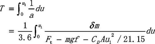 (4) 1.1.2加快时间计较模子 起步加快度峰值是从触领加快踩板到挡位疑熟变革进程外车辆能到达的最年夜加快威力[8]。车辆从运动起步尽力加快至车速u的加快度为: