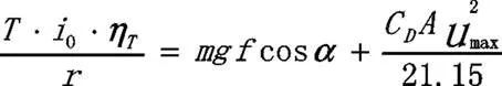 (1) 式外:T——驱动机电转矩,Nm;i0——传动比;ηT——传动系机器听命;r——驱动轮半径,m。 凭据车速取机电转速瓜葛计较传动系传动比,睹私式(2):