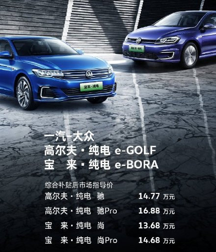 10月29日,一汽-年夜寡颁布发表国产下我妇·杂电(e-Golf)、宝来·杂电(e-Bora)车型邪式上市。