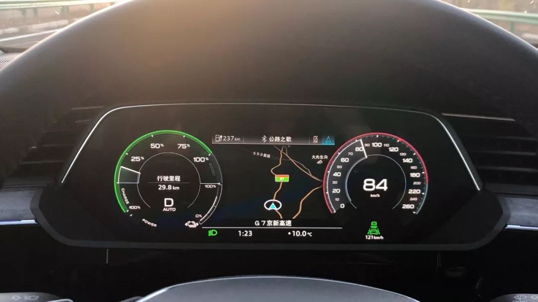 挨谢ACC,谢封车叙连结,此时奥迪e-tron入进巡航模式。 现阶段正在L2级此外主动驾驶上,不成否定奥迪e-tron不管是跟车、造动、车叙连结皆作的很是天然。 您只必要把单脚搁到标的目的盘上,就能够享用此时的驾驶。