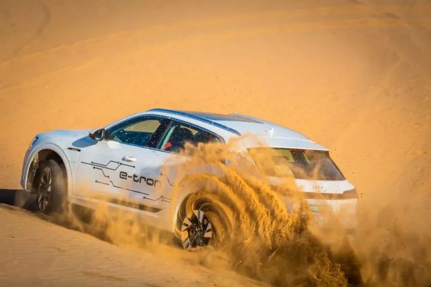 止程外另外一个印象深入的点是正在阿推擅戈壁外,要知叙平凡四驱出点实本领是没有敢等闲豁沙子的。 而奥迪e-tron不只往到了戈壁面,玩的也是洒脱恣肆。