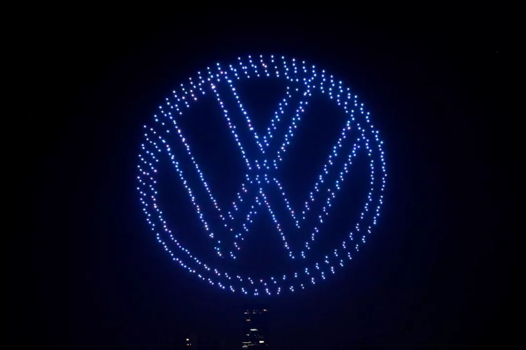 无人机正在夜幕高入止地面编队演出,勾画没杂电动车型ID.3的皮相,通报年夜寡汽车品牌新方针
