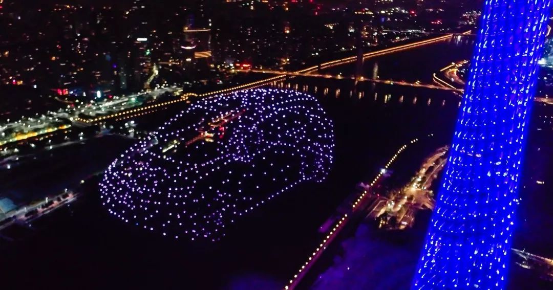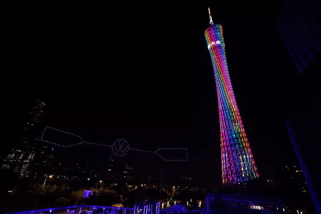 年夜寡汽车品牌庆贺齐新表记外国尾领 隆重无人机演出闪耀广州塔