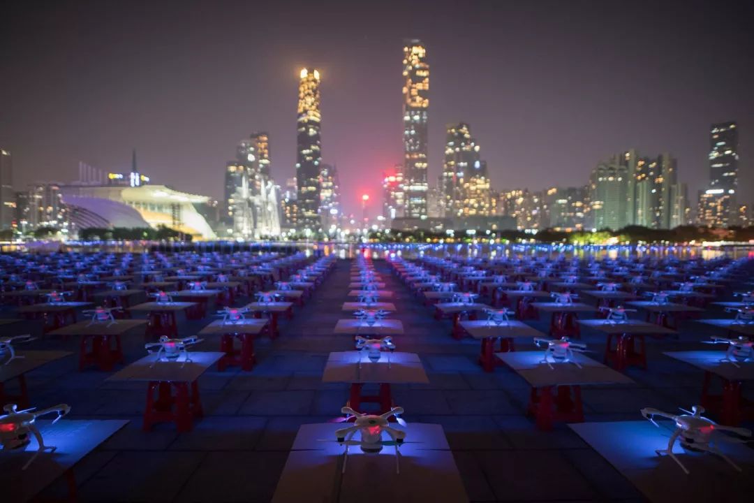 由900架无人机构成的年夜型编队,构成了多个极具视觉打击力的绘里